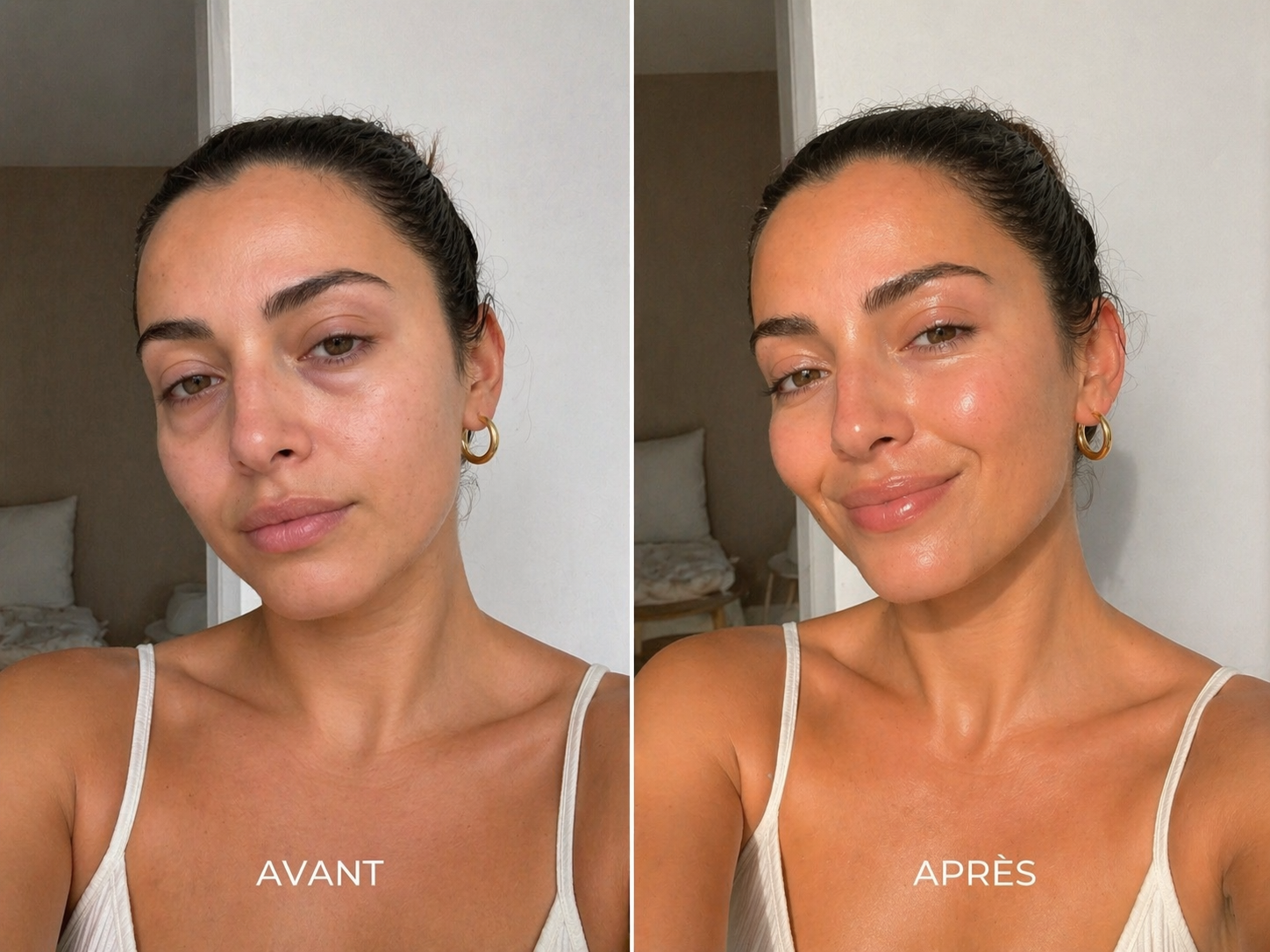 Résultat : traits affinés, mâchoire redessinée, regard réveillé. Dès le premier matin.